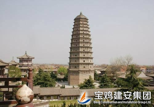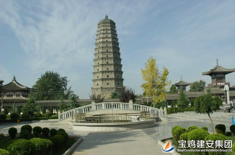 | The reconstruction project of Famen Temple is constructed by the People's Government of Shaanxi Province. The real pagoda is restored on the original site. The project of Famen Temple Museum is constructed for the purpose of collection and exhibition of the rare treasures unearthed from the underground palace of Tower of Famen Temple. The newly built Famen Temple Museum project includes nine individual projects such as Treasure Pavilion and Multi-function Hall etc. The architectural form is Tang-style architecture, and the modern communications, heating, automatic alarm, fire fighting and other facilities are built internally. The shape of real pagoda is the complete restore type of pagoda in the Ming Dynasty. Its internal part is the binocular cast reinforced concrete structure with the steel staircase and a total of 13 floors. The building area is of ??1699 square meters.