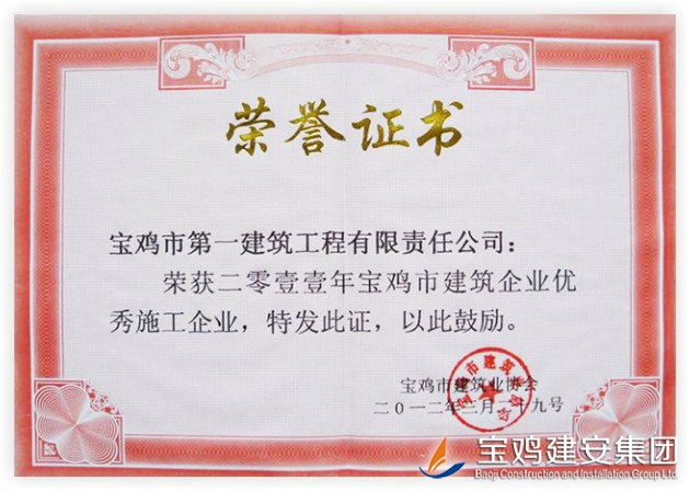 Excellent Construction Enterprise among Construction Enterprises of Baoji City in 2011