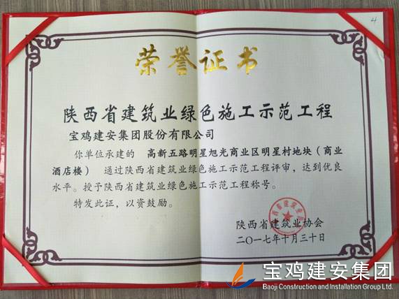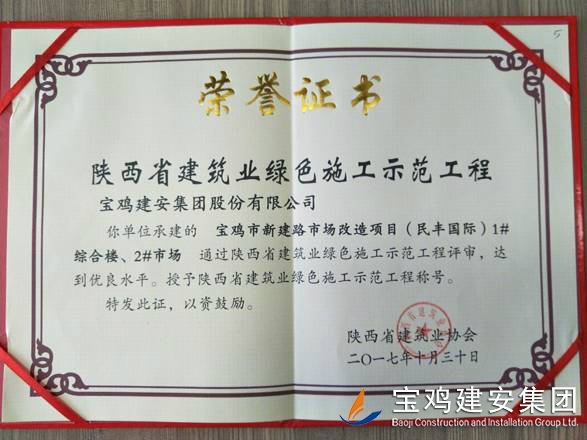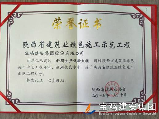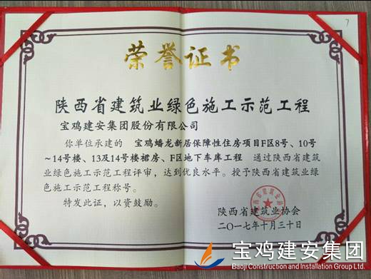 2018年1月26日在西安召開(kāi)了陜西省建筑業(yè)協(xié)會(huì)第六屆二次理事會(huì)議,我公司承建的科研生產(chǎn)試驗(yàn)大樓、寶雞蟠龍新居SF05標(biāo)段,高新五路明星佳苑、新建路市場(chǎng)改造項(xiàng)目(民豐國(guó)際)、中聯(lián)國(guó)際廣場(chǎng)項(xiàng)目,在2017年度綠色施工評(píng)審過(guò)程中,達(dá)到優(yōu)良水平,被授予陜西省建筑業(yè)綠色施工示范工程稱(chēng)號(hào)。 此次榮譽(yù)的獲得離不開(kāi)公司各職能部室的指導(dǎo)與項(xiàng)目部的辛勤努力,項(xiàng)目部能緊跟建筑行業(yè)發(fā)展的大方向,不斷加強(qiáng)綠色施工過(guò)程管理的學(xué)習(xí),在施工過(guò)程中圍繞著“四節(jié)一環(huán)保”理念,堅(jiān)持走節(jié)能降耗,增效降本,可持續(xù)發(fā)展的施工道路,最終取得了可喜的成績(jī)。 公司綠色施工整體水平近年來(lái)得到顯著提高,希望各項(xiàng)目部在2018年的施工過(guò)程中,以文明施工,綠色施工標(biāo)準(zhǔn)嚴(yán)格要求自己,力爭(zhēng)在施工管理方面取得更高的成績(jī)。