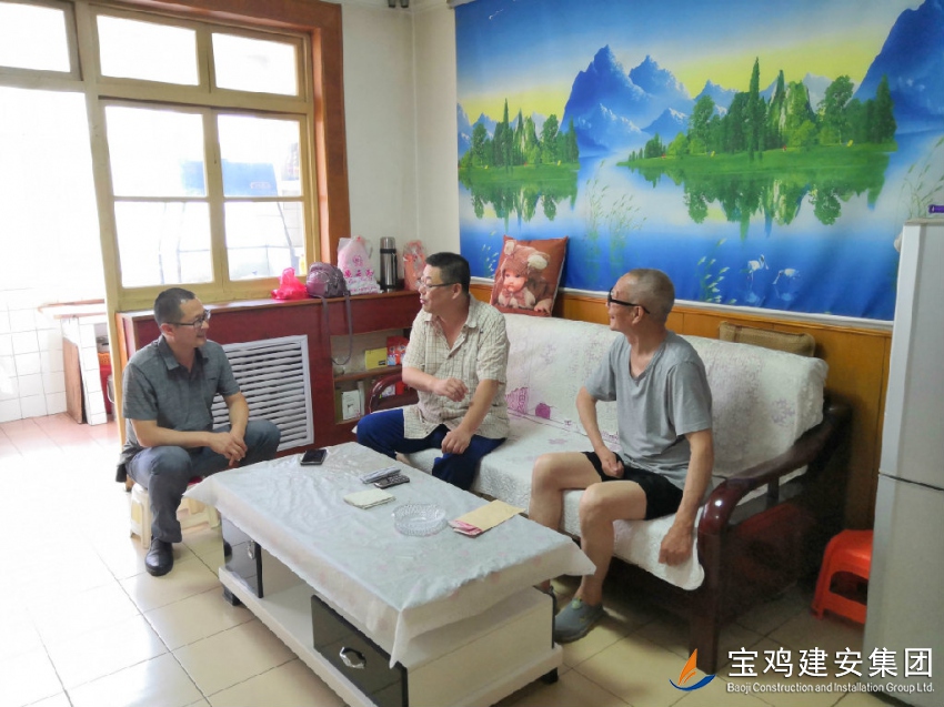 7月8日上午,公司黨委書記寧平、黨群部副部長李軍鋒代表公司黨委及市住建局黨組對退休困難黨員李虎林進行了慰問。