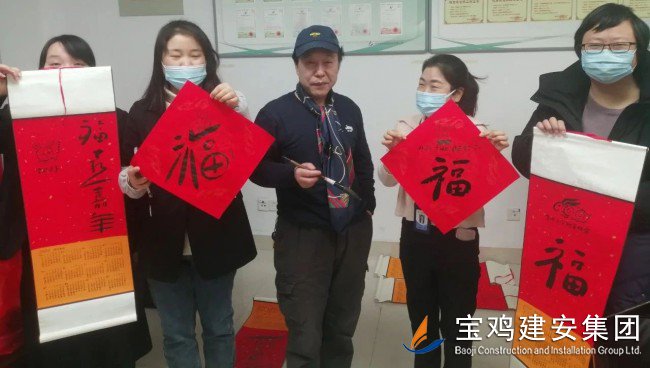 “虎嘯傳捷報,玉兔迎春暉”,在癸卯新春即將到來之際,公司工會特邀我市著名書畫家、篆刻家、寶雞印社名譽社長、寶雞市直機關書畫協(xié)會副會長兼秘書長張寶文老師蒞臨建安大廈,為廣大員工精心繪制生肖畫、書寫新春聯(lián),將春節(jié)的喜慶與祥和及時送到了廣大員工的身邊...... “虎嘯傳捷報,玉兔迎春暉”,在癸卯新春即將到來之際,公司工會特邀我市著名書畫家、篆刻家、寶雞印社名譽社長、寶雞市直機關書畫協(xié)會副會長兼秘書長張寶文老師蒞臨建安大廈,為廣大員工精心繪制生肖畫、書寫新春聯(lián),將春節(jié)的喜慶與祥和及時送到了廣大員工的身邊...... “萌萌噠”的玉兔挑著燈籠歡笑著,蹦跳著,燈籠上系著鞭炮、掛著糖葫蘆、閃著福星,飄逸灑脫的福字和“諸事和順、兔年幸福”的吉祥語與英語文“Happy new year”“Best wishes”中西合璧、巧妙結(jié)合,將辭舊迎新的節(jié)慶氣氛濃縮在一張張中國紅的斗方宣紙與節(jié)日掛歷上,濃濃的年味撲面而來,帶給大家無盡的喜悅與祝福……