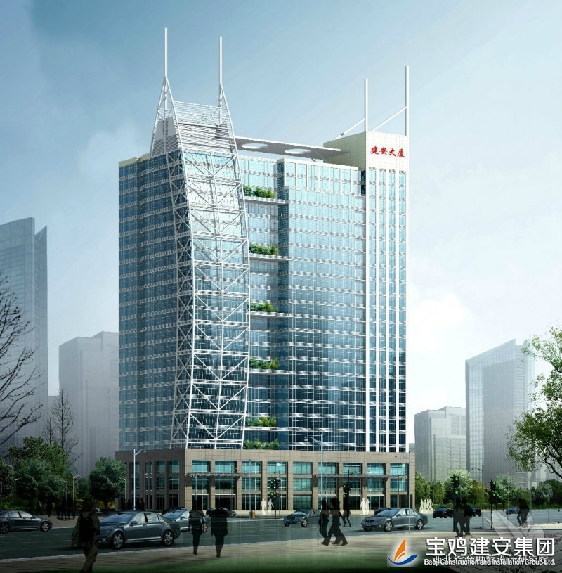 Jian’an building is located in the west section of Gongyuan Road, Weibin District, Baoji City. With the building area of 49937, it is the frame shear wall structure with one floor underground and two in partial positions as well as 24 floors above ground. The building has a total length of 84.85m, and the total building width of 39.30m, and the total building height of 97.20m. Jian’an Building is the high intelligence modern office complex integrated with multiple functions of office buildings, restaurants, business hotels, sports venues, lecture hall and automatic stereo garage etc. The project was awarded the "Chang’an Cup" award of Shaanxi Province and the provincial civilized construction site.