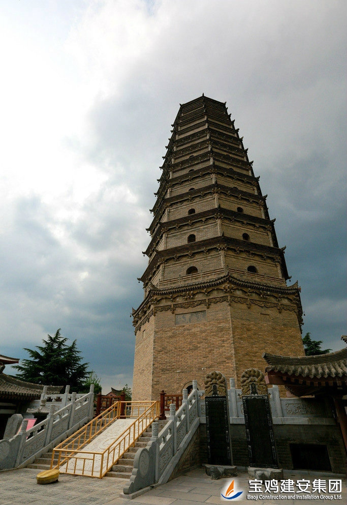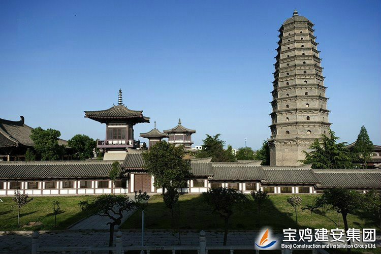 | The reconstruction project of Famen Temple is constructed by the People's Government of Shaanxi Province. The real pagoda is restored on the original site. The project of Famen Temple Museum is constructed for the purpose of collection and exhibition of the rare treasures unearthed from the underground palace of Tower of Famen Temple. The newly built Famen Temple Museum project includes nine individual projects such as Treasure Pavilion and Multi-function Hall etc. The architectural form is Tang-style architecture, and the modern communications, heating, automatic alarm, fire fighting and other facilities are built internally. The shape of real pagoda is the complete restore type of pagoda in the Ming Dynasty. Its internal part is the binocular cast reinforced concrete structure with the steel staircase and a total of 13 floors. The building area is of ??1699 square meters.