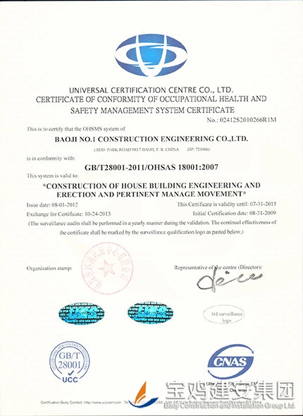 BAOJI CONSTRUCTION AND INSTALLATION GROUP LTD. Tel: (86)0917-2790802 Fax: (86)0917-2790802 Address: Weibinqu Gongyuan Road, Baoji, Shaanxi 721014, China E-mail: bjcig_com@bjcig.com