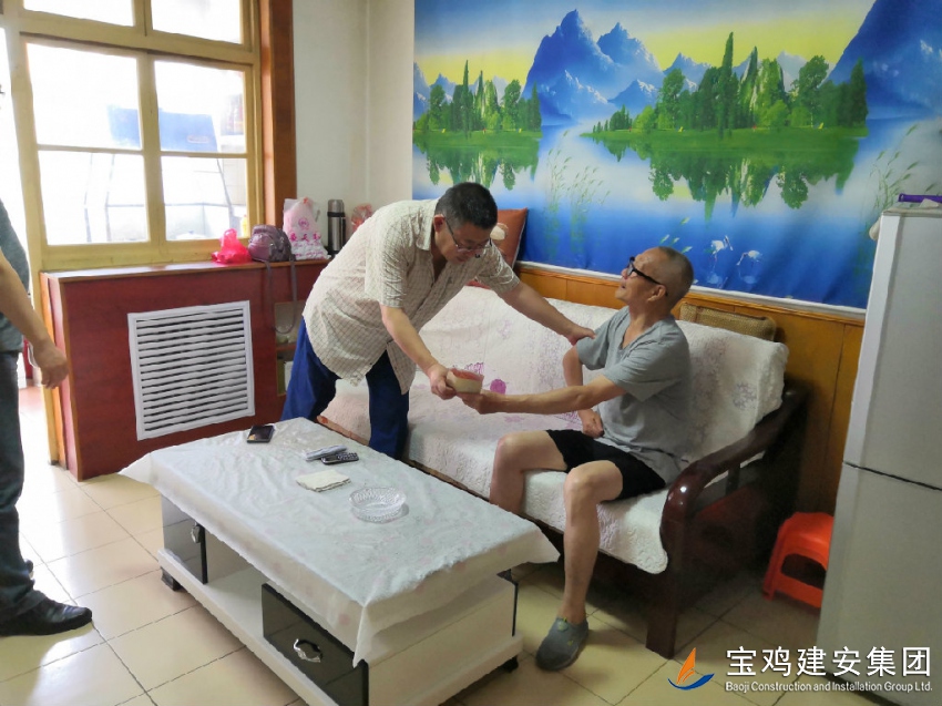 寧書記一行來到李虎林家中,第一感覺這是一位愛干凈、積極樂觀的老黨員、老同志,他雖然74歲,黨齡44年,且行動不便,但精神狀態(tài)良好,笑容滿面,衣著整潔;進入家中,窗明幾亮,屋子整潔,簡單的家具擺設(shè)整齊有序。見到黨委書記和李部長的到來,李虎林同志熱情的握手表示歡迎。在詢問了李虎林近來的身體狀況和日常生活情況后,寧書記將市住建局黨組的慰問金及公司黨委的關(guān)懷送上,李虎林同志表示非常感謝,一再感謝黨組織的關(guān)懷,感謝公司這么多年來還記得他,每年都有人來探望,讓他這樣的老黨員老員工一直深感不曾被組織忘記過,感恩、感謝之情溢于言表!臨走前,黨委書記一再叮囑,老同志要照顧好自己,有困難可以隨時找組織,找單位。