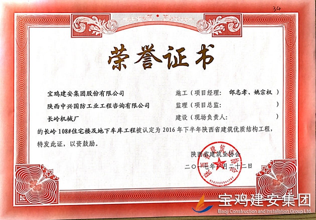 長嶺108#樓及地下車庫 省優(yōu)質(zhì)結(jié)構(gòu)工程