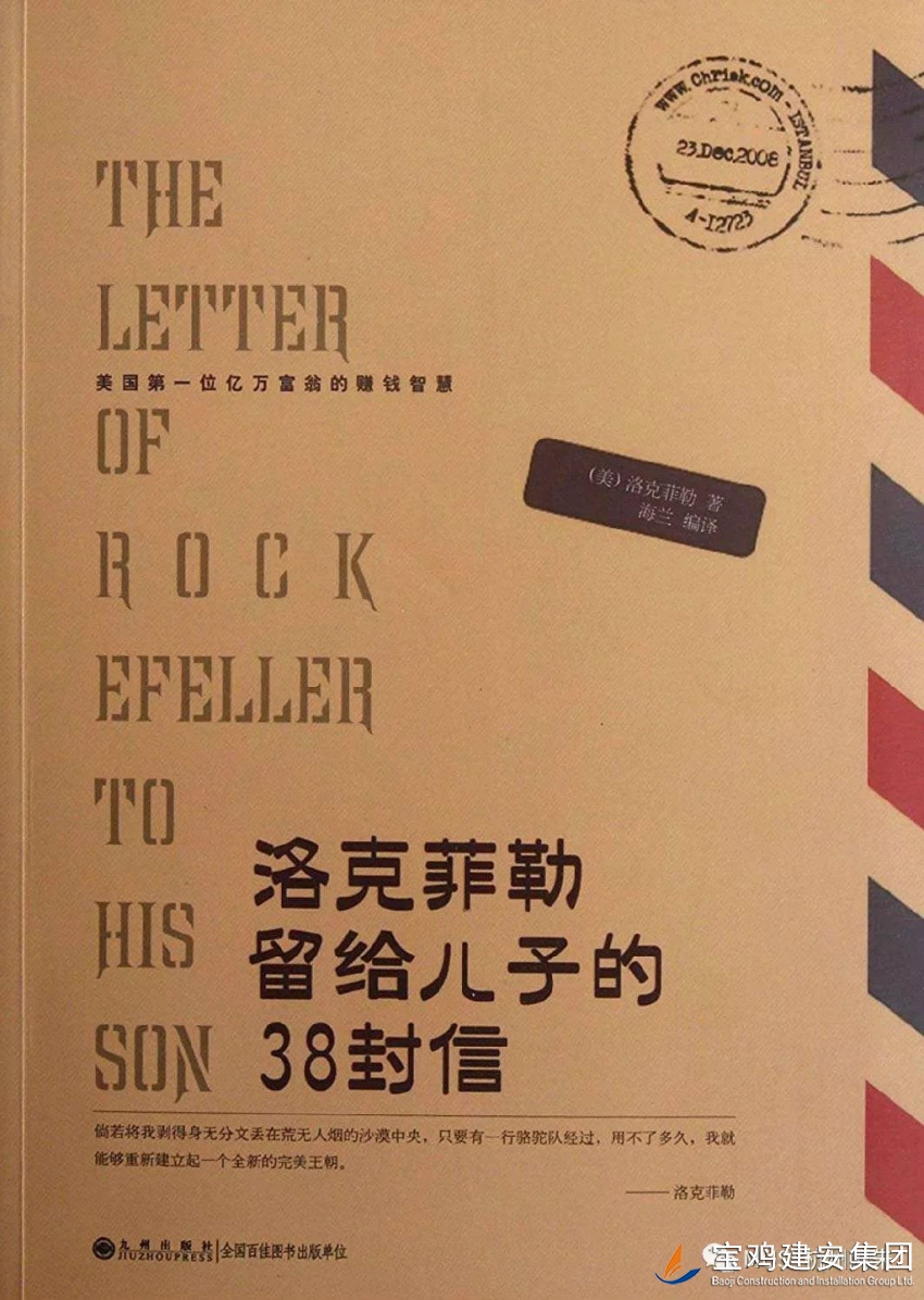 單位:第八項(xiàng)目部 作者:張兆陽(yáng) 中國(guó)有句古話:至樂(lè)莫若讀書(shū),至要莫若教子。如何教育引導(dǎo)好年輕人,長(zhǎng)久以來(lái)都是世界各個(gè)階級(jí)父母所關(guān)注的話題。洛克菲勒,標(biāo)準(zhǔn)石油公司創(chuàng)立者、全球首富。2009年福布斯公布“美國(guó)史上十五大富豪”,洛克菲勒名列榜首。這樣一個(gè)商業(yè)巨擘,同樣也在研究如何指引年輕一代。在這本書(shū)中,就淋漓盡致地呈現(xiàn)出了他對(duì)教育的見(jiàn)解。
