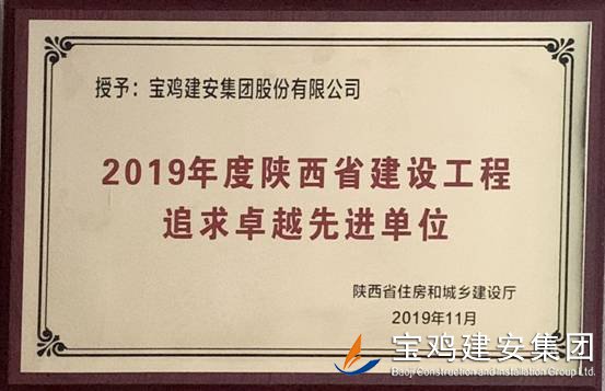 2019年度陜西省建設(shè)工程追求卓越先進(jìn)單位