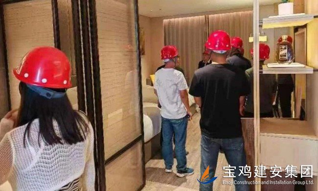 來訪人員首先闡明了此行的目的和意義,我單位相關(guān)管理人員針對隴縣海棠酒店項(xiàng)目特征、在建情況、建成后主要建筑功能,向各位嘉賓進(jìn)行了詳細(xì)介紹。隨后在安裝一公司現(xiàn)場管理人員陪同下,對隴縣海棠酒店已成型樣板間,廚房、大堂及地下車庫等工程重點(diǎn)建設(shè)部位進(jìn)行實(shí)地參觀考察。我公司管理人員對西建集團(tuán)、陜西省建筑設(shè)計(jì)院同仁提出的專業(yè)問題給予了耐心解答,在輕松友好的氣氛中,嘉賓對我公司施工項(xiàng)目質(zhì)量及企業(yè)綜合實(shí)力表達(dá)了高度認(rèn)可與肯定。